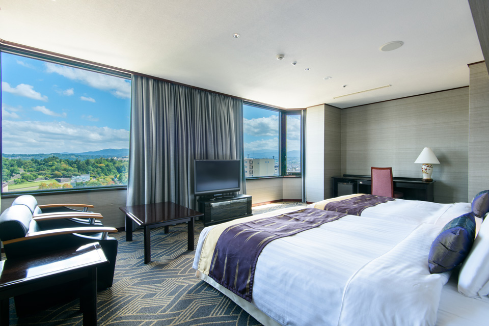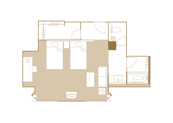 お部屋の間取りはあくまで一例です。面積や家具の配置、備品などはお部屋により異なりますので、あらかじめご了承ください。