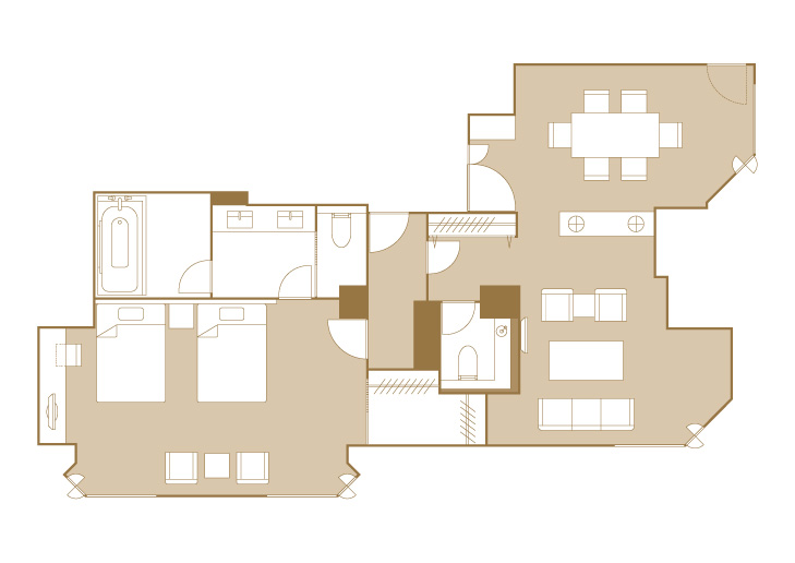 お部屋の間取りはあくまで一例です。面積や家具の配置、備品などはお部屋により異なりますので、あらかじめご了承ください。