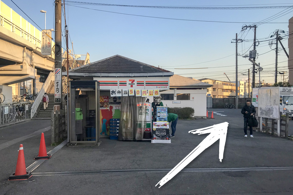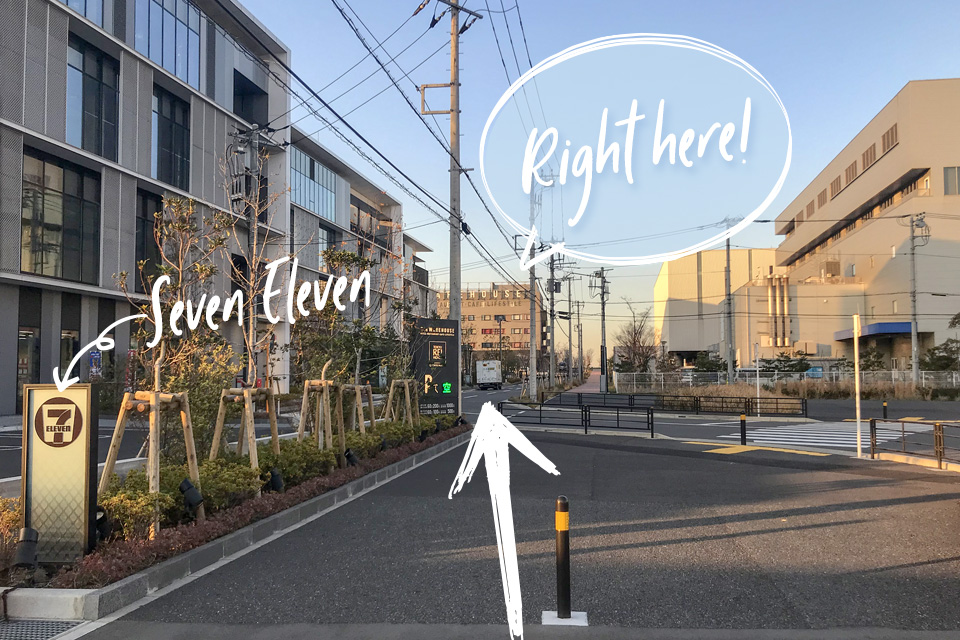 小島新田駅を出て、正面セブンイレブンの右側に進み、突き当たりを左折し、次の交差点まで進みます。国道409号線を渡って右折し、しばらく道なりに進みます。交差点「キングスカイフロント入口」を左折し、モノクロのセブンイレブンを過ぎ、左手「The WAREHOUSE」がホテルになります。
