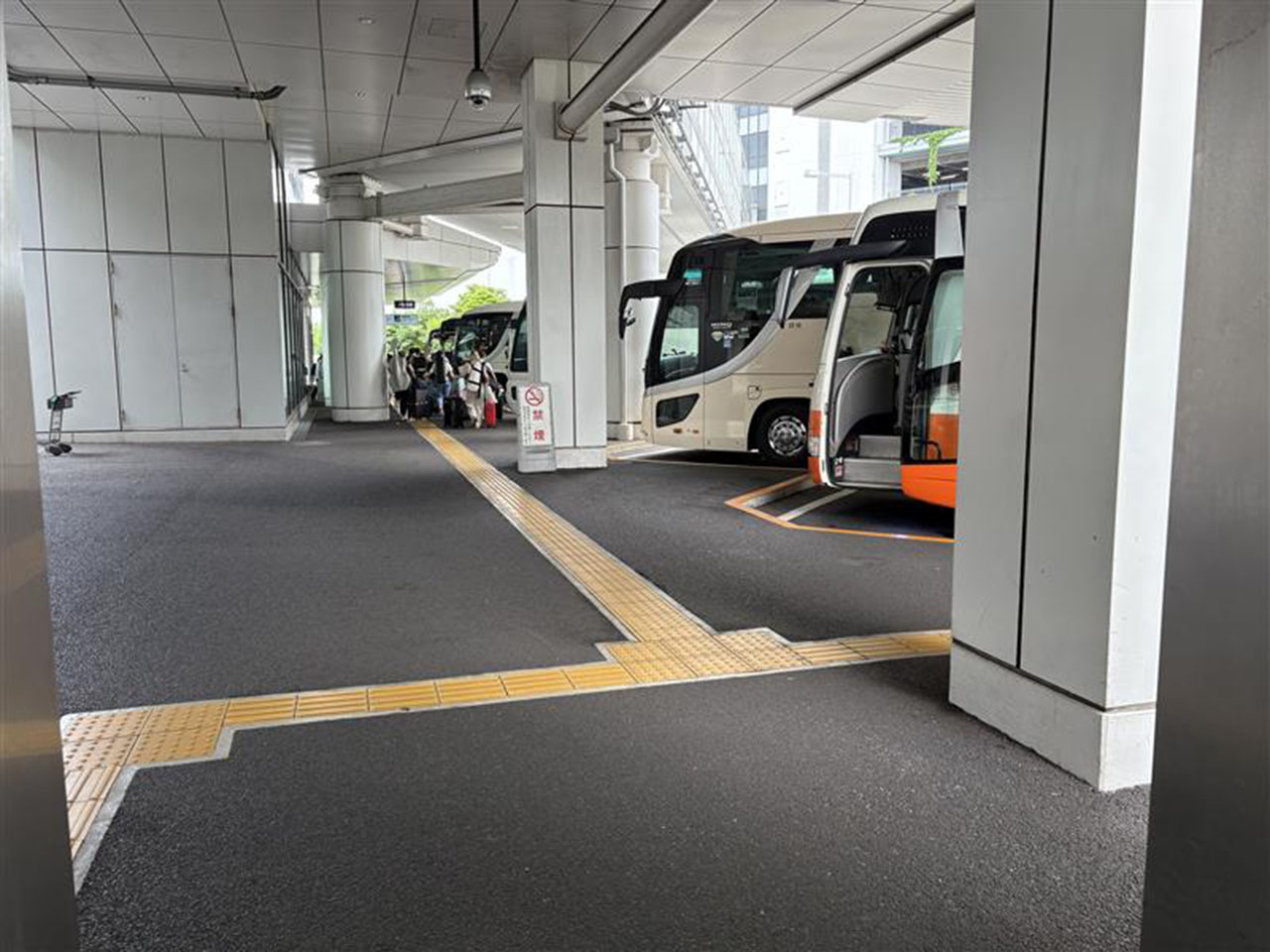 ヨドバシカメラ前の喫煙所前にある一時停車場に停車します。(一時停車場は公共エリアです)