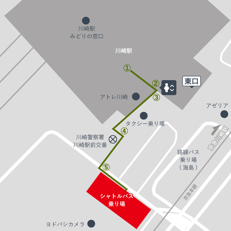 正面に大型ビジョンを見ながらエスカレーターの左手にあるエレベーターにて1階に降ります