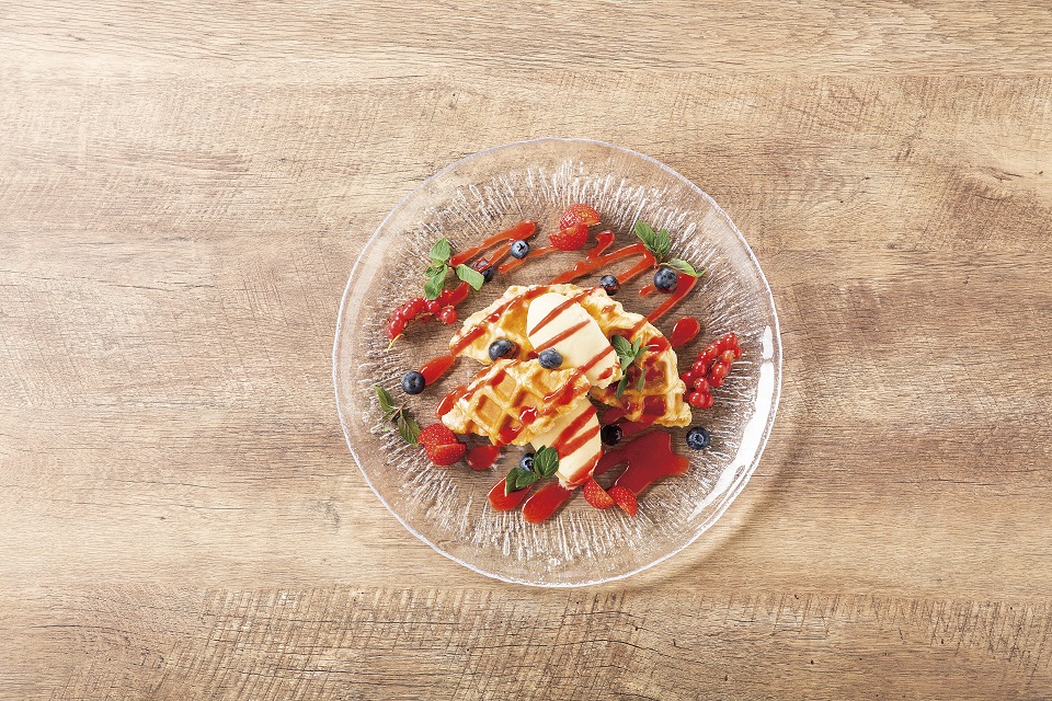 サクサクな生地とAOPバター香るクロワッサンワッフルを、色とりどりのフルーツでデコレーションしたプレートです。