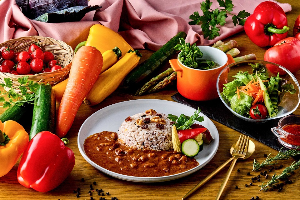 穀物や豆類、野菜や大豆ミートなどを用いたメニューをご用意しております。