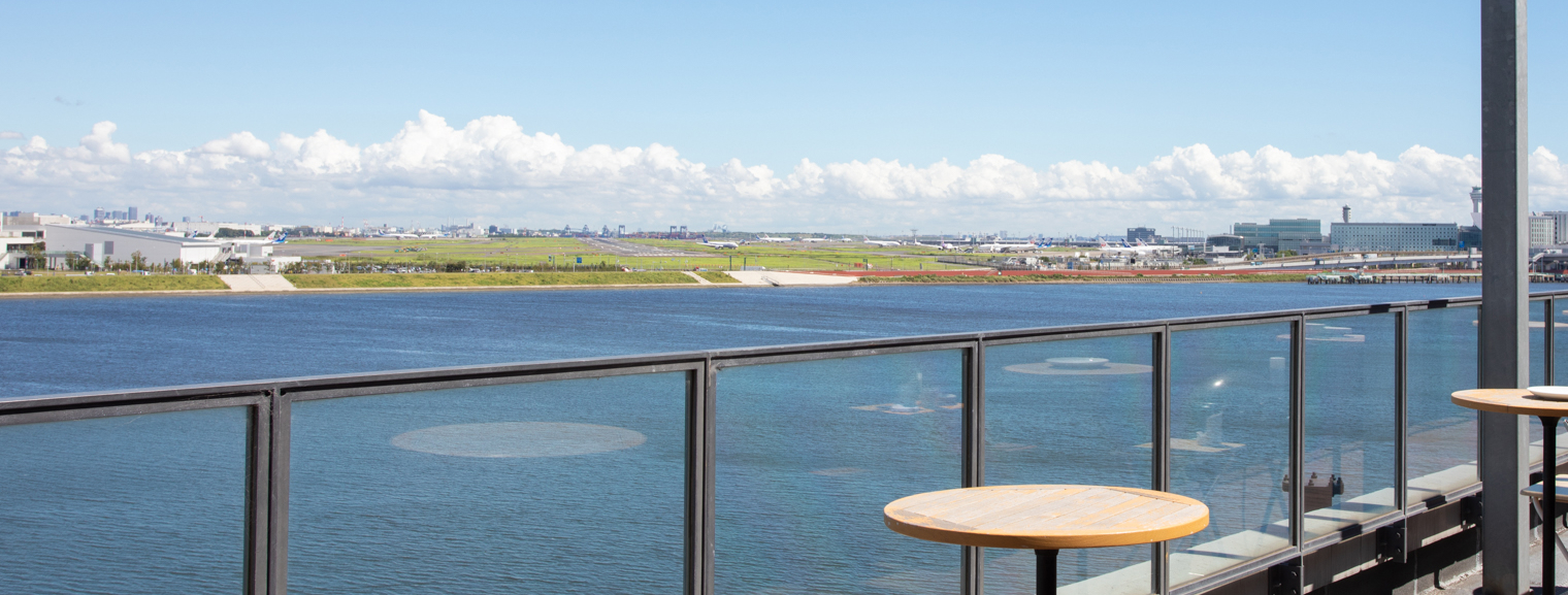多摩川と羽田空港という、圧巻のビューを前に味わえます。