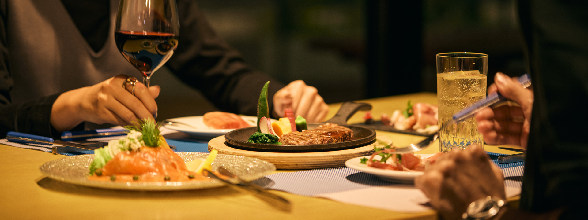 5Fに位置するレストランでは、グリル料理を中心とした上質なメニューを、