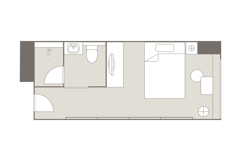 お部屋の間取りはあくまで一例です。面積や家具の配置、備品などはお部屋により異なりますので、あらかじめご了承ください。