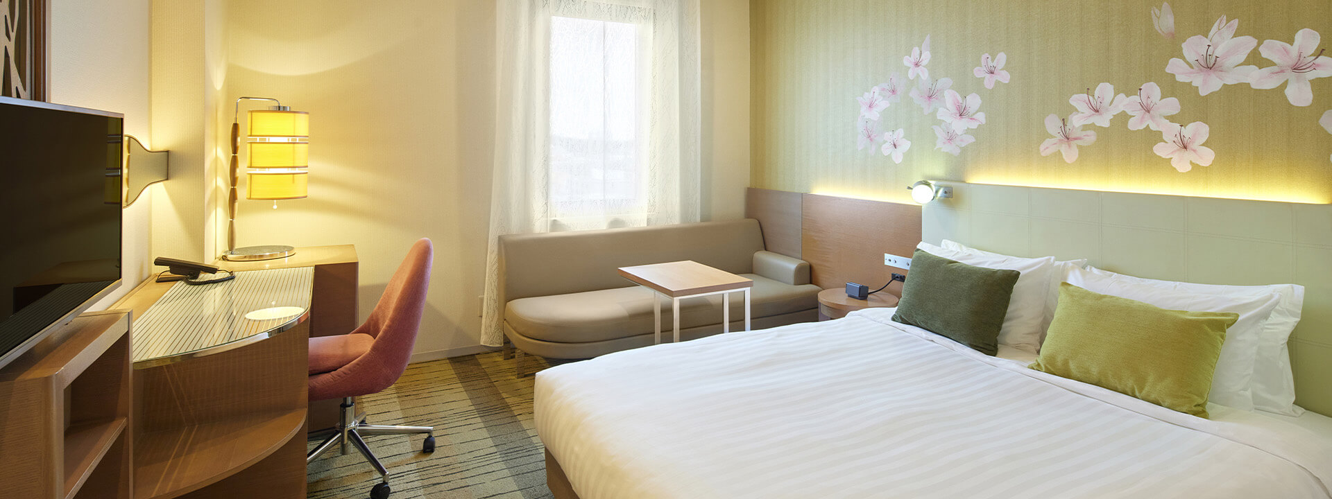 お部屋の間取りはあくまで一例です。面積や家具の配置、備品などはお部屋により異なりますので、あらかじめご了承ください。