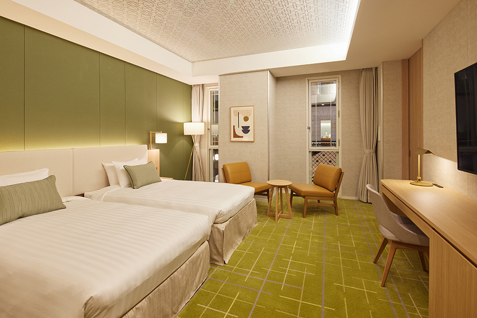 お部屋の間取りはあくまで一例です。面積や家具の配置、備品などはお部屋により異なりますので、あらかじめご了承ください。