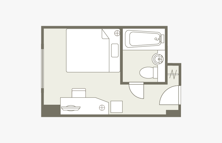 お部屋の間取りはあくまで一例です。面積や家具の配置、備品などはお部屋により異なりますので、あらかじめご了承ください。