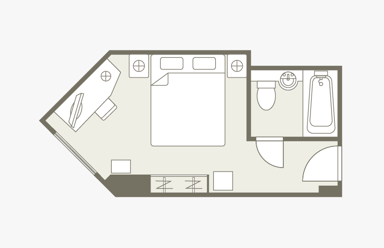 お部屋の間取りはあくまで一例です。面積や家具の配置、備品などはお部屋により異なりますので、あらかじめご了承ください。