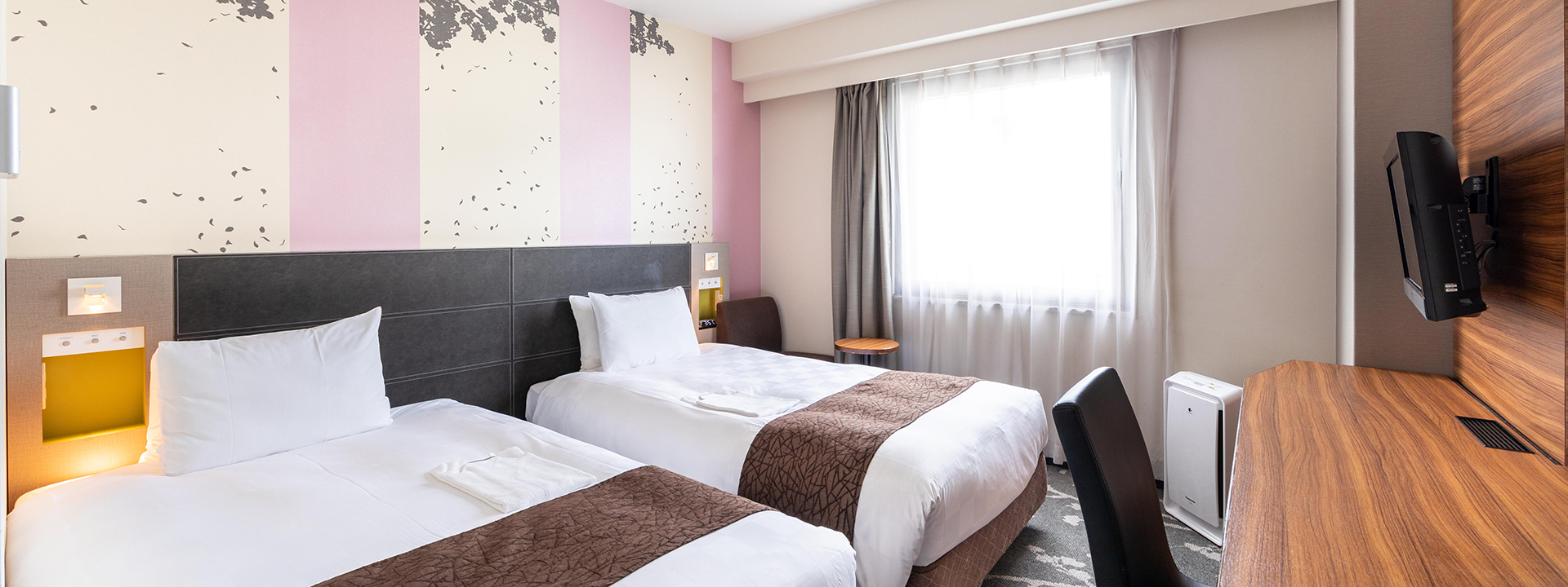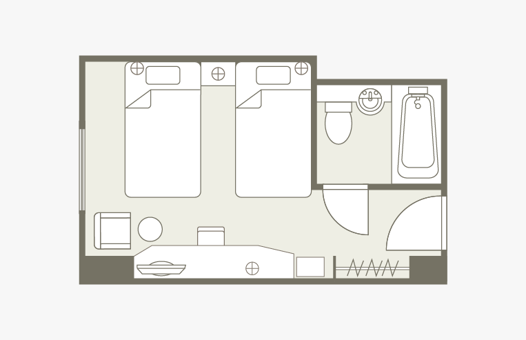 お部屋の間取りはあくまで一例です。面積や家具の配置、備品などはお部屋により異なりますので、あらかじめご了承ください。