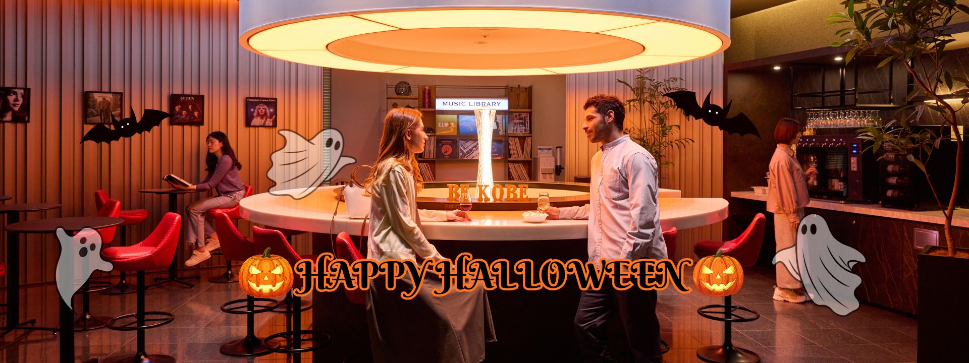 ポップコーン、ナッツ、ハロウィン仕様のスナックなど無料でお召し上がりいただけます