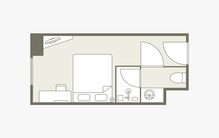 お部屋の間取りはあくまで一例です。面積や家具の配置、備品などはお部屋により異なりますので、あらかじめご了承ください。