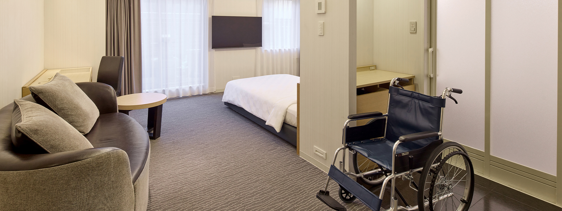 身体の不自由なお客さまにも快適お過ごしいただけるよう配慮したデラックスツインルームです。