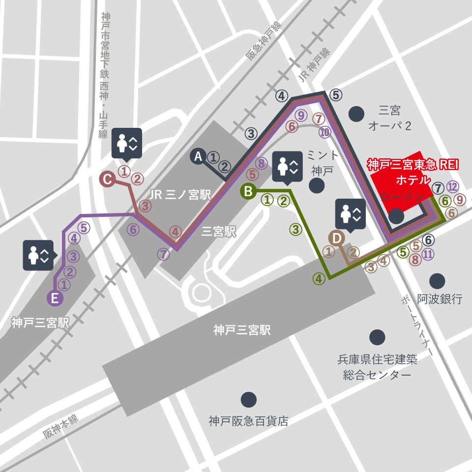 E 阪急電車神戸三宮駅からホテルまでの経路