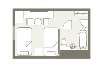 お部屋の間取りはあくまで一例です。面積や家具の配置、備品などはお部屋により異なりますので、あらかじめご了承ください。