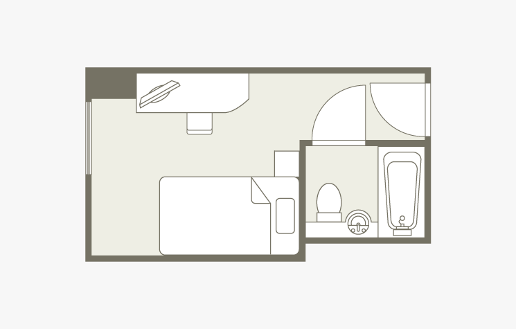 お部屋の間取りはあくまで一例です。面積や家具の配置、備品などはお部屋により異なりますので、あらかじめご了承ください。