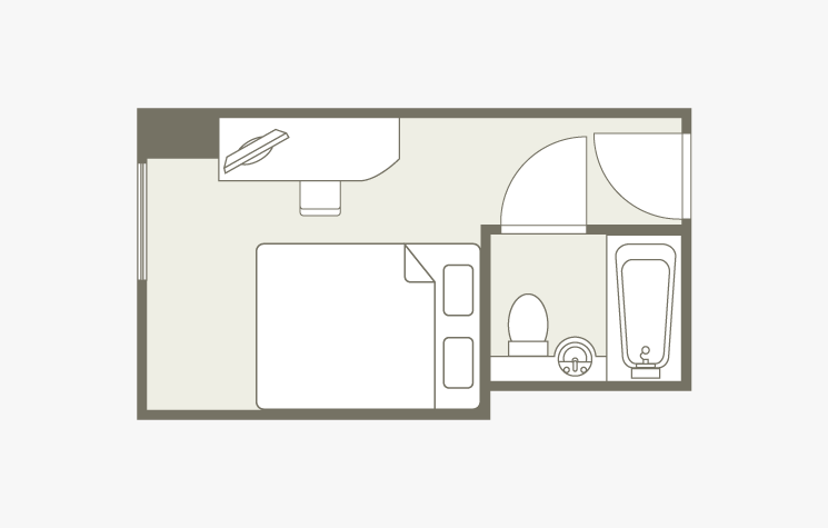 お部屋の間取りはあくまで一例です。面積や家具の配置、備品などはお部屋により異なりますので、あらかじめご了承ください。