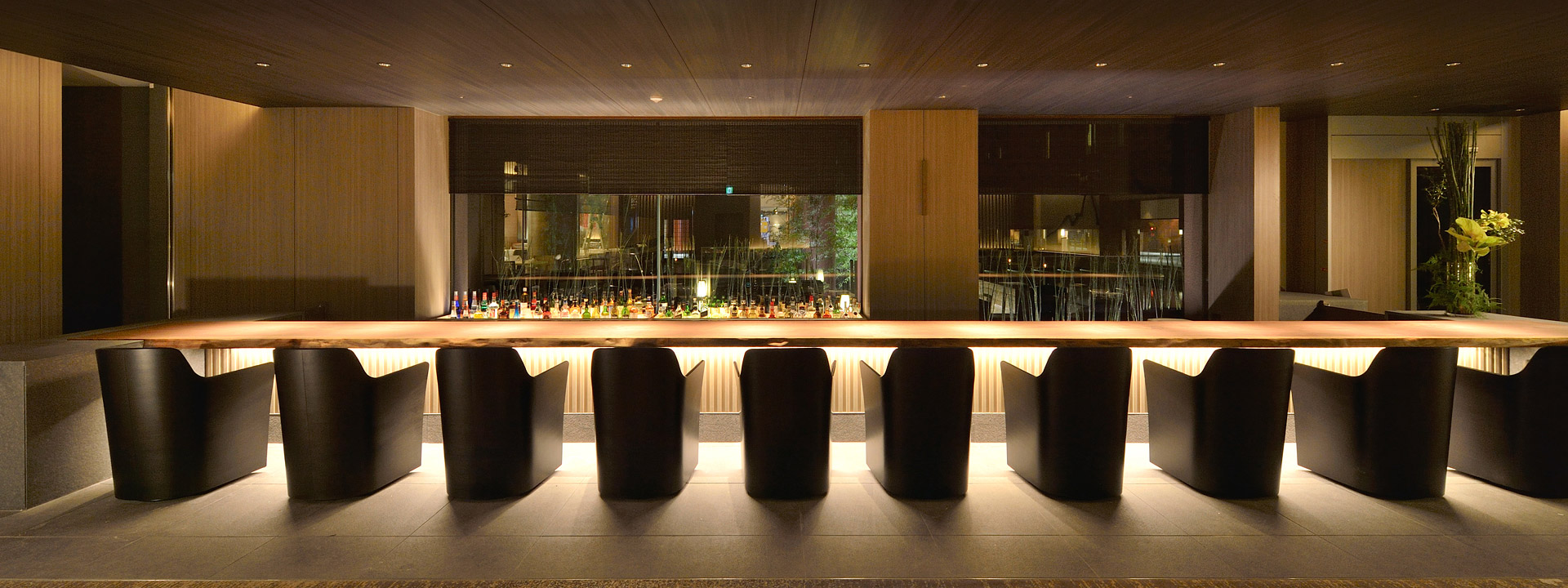 堀川の流れを再現した中庭を愉しむラウンジ&バー。