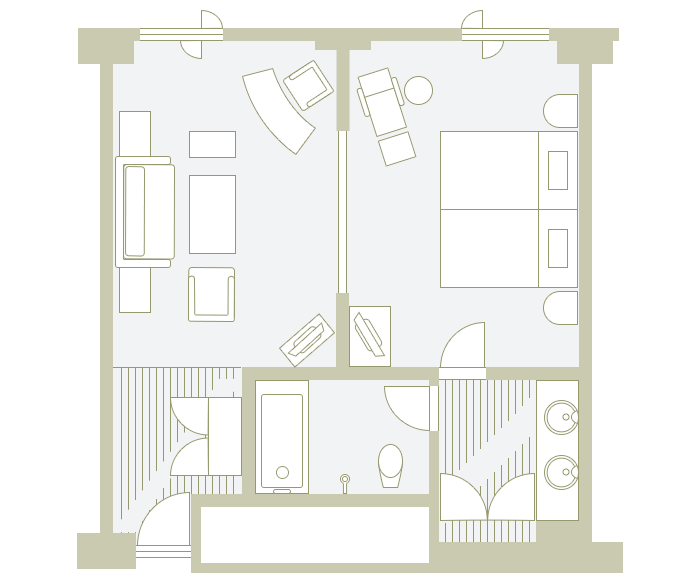 お部屋の間取りはあくまで一例です。面積や家具の配置、備品などはお部屋により異なりますので、あらかじめご了承ください。