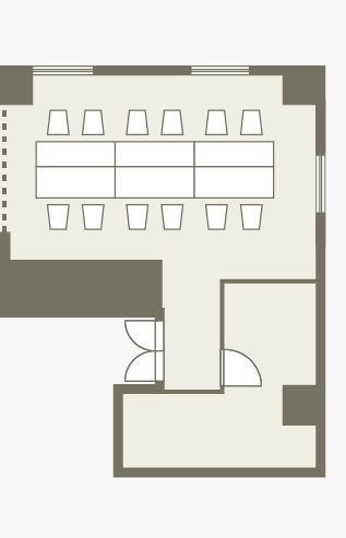 落ち着いてお話が出来る会場です。会場レイアウトは、対面式、スクール形式とご利用いただけます。