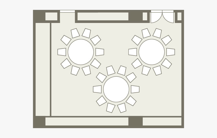 横長のお部屋で、パーティー、ご会食、会議などにご利用いただけます。