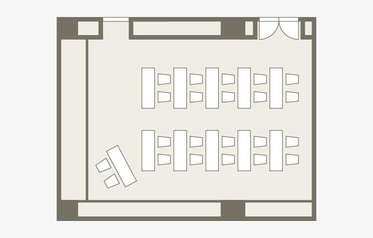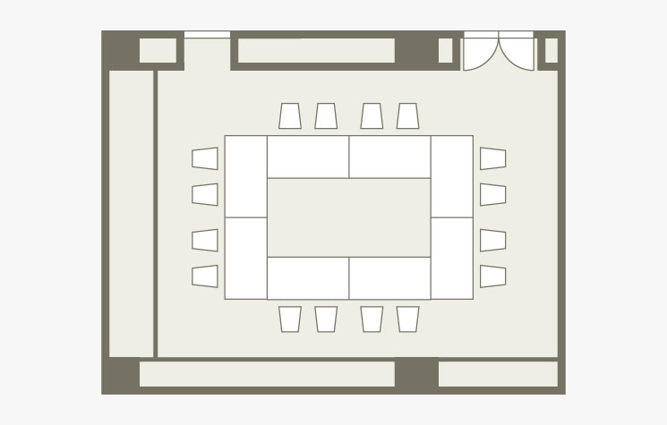 落ち着いてお話が出来る会場です。会場レイアウトは、対面式、スクール形式とご利用いただけます。