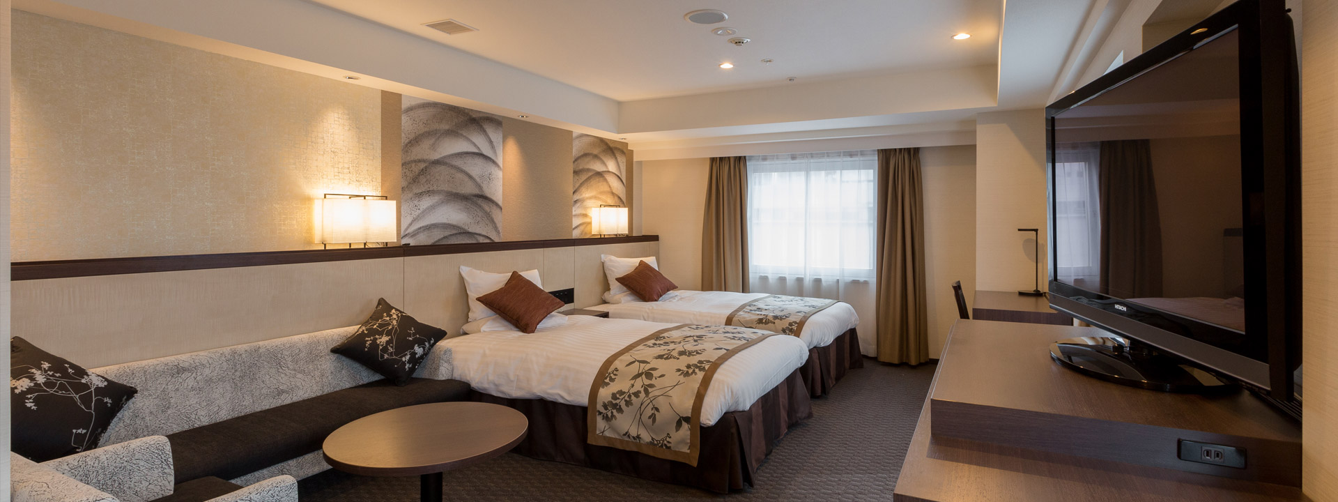 デラックスツインのお部屋はお電話とインターネットでのご予約となります。なお、インターネットご予約の際は、洋室、和洋室のご指定ができません。ご希望ございましたら、お手数でございますがお電話にてご連絡お願いいたします。
