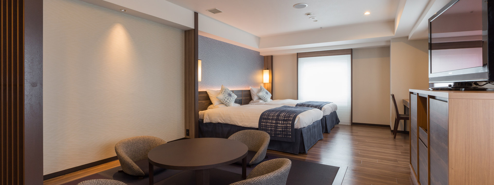 デラックスツインのお部屋はお電話とインターネットでのご予約となります。なお、インターネットご予約の際は、洋室、和洋室のご指定ができません。ご希望ございましたら、お手数でございますがお電話にてご連絡お願いいたします。