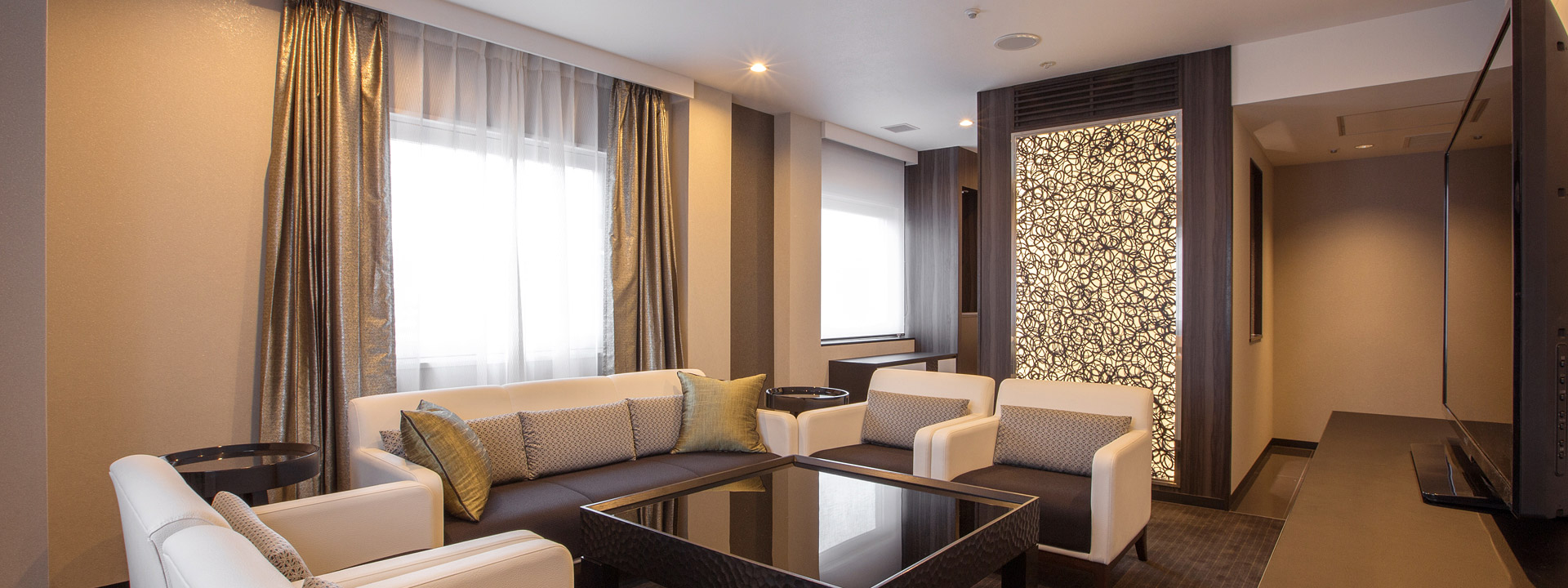 隠岐と石見、出雲をイメージしたデザインのお部屋です。西側、南側の窓からたくさんの光をとり入れ、ゆったりとした広めのスペースに落ち着いたインテリアを備えたお部屋です。