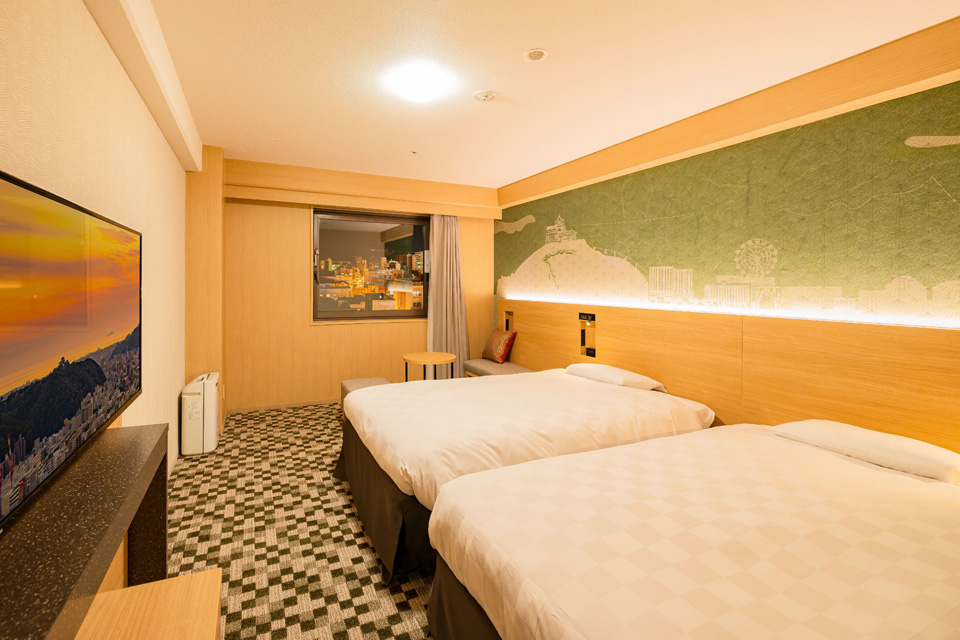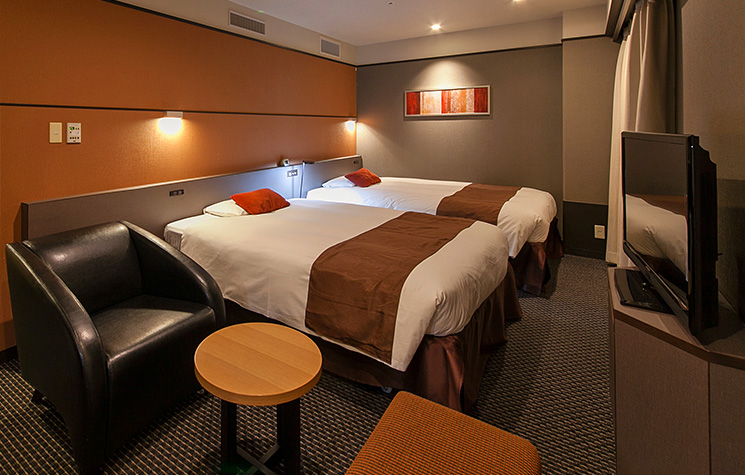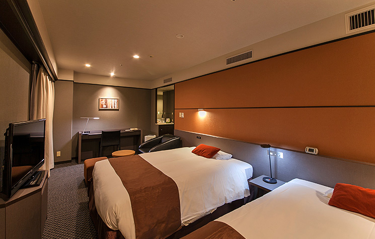 30㎡のお部屋をツイン・トリプルとお客さまのニーズに合わせていかようにも対応いただけるお部屋です。バスとトイレ・洗面台が独立しており、ゆったりとしたバスタイムもお楽しみいただけます。天井からの「レインシャワー」も魅力のひとつ。