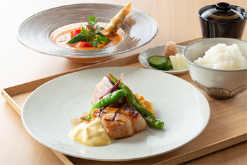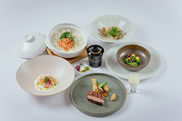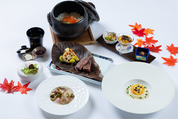 眺望と食の両方を楽しめる13階のレストラン「炉 L'EAU」。モダンな空間の中でライブ感あふれる演出やダイナミックな調理法など、新しい炉端焼きのスタイルが旅のワンシーンを彩ります。
