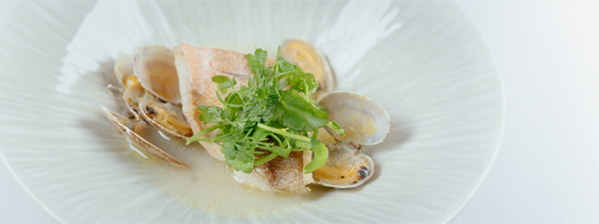 伝統の和の技とフレンチの繊細さを融合し、溶岩石の熱で丁寧に焼き上げた逸品をご用意。