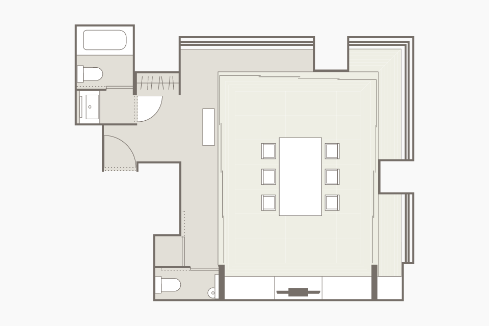 お部屋の間取りはあくまで一例です。面積や家具の配置、備品などはお部屋により異なりますので、あらかじめご了承ください。