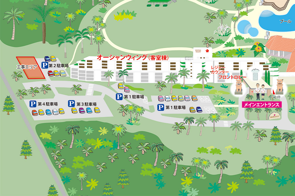 この度、ホテル敷地内第2駐車場において、機械棟建設工事を実施することとなりました。2025年9月15日より機械棟建屋建設工事を開始しております。作業期間中は車両・重機の出入り及び、作業に伴う騒音が発生致します。安全対策については、案内看板の設置やお客様へのご案内、ご誘導など、万全を期して参ります。
