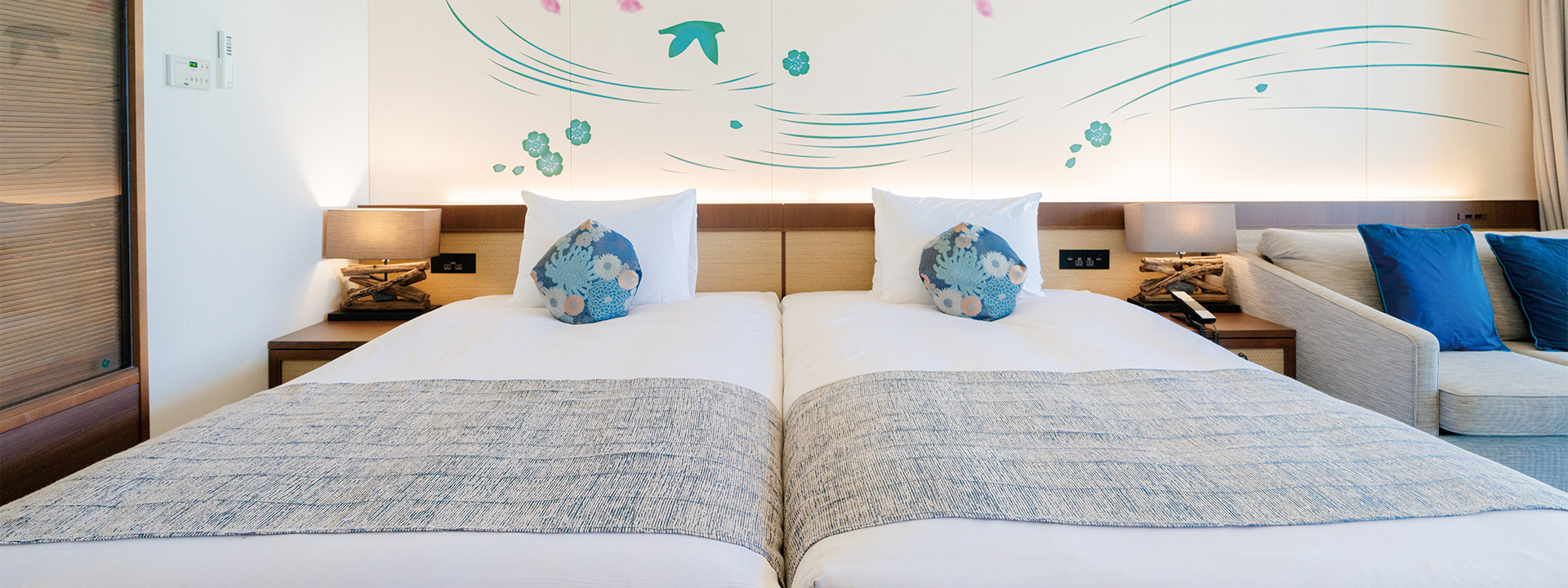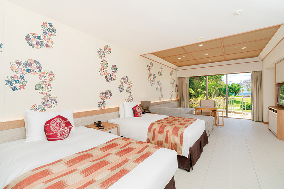 お子さまと一緒に安心して滞在できるようデザインされたお部屋です。 オーシャンウイングには畳間付きの和洋室と、広々としたファミリー洋室。 コーラルウイングには海が眺められるスーぺリアツインルームをご用意しております。
