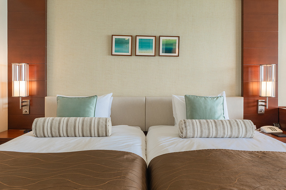 コーラルウイング棟のお部屋は全タイプバスルームとトイレが別々となっており、より一層広々とした空間をご提供しております。4名さままでご宿泊いただけるスーペリアツインから高層階ならではの眺望をお楽しみいただけるグランドツインまでご要望にあわせてご利用いただけます。