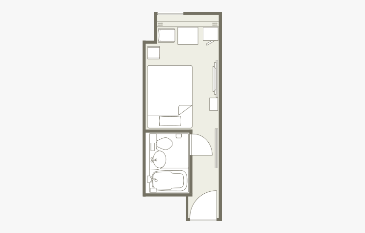 お部屋の間取りはあくまで一例です。面積や家具の配置、備品などはお部屋により異なりますので、あらかじめご了承ください。