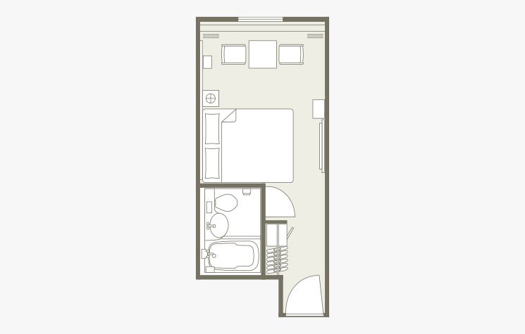 お部屋の間取りはあくまで一例です。面積や家具の配置、備品などはお部屋により異なりますので、あらかじめご了承ください。