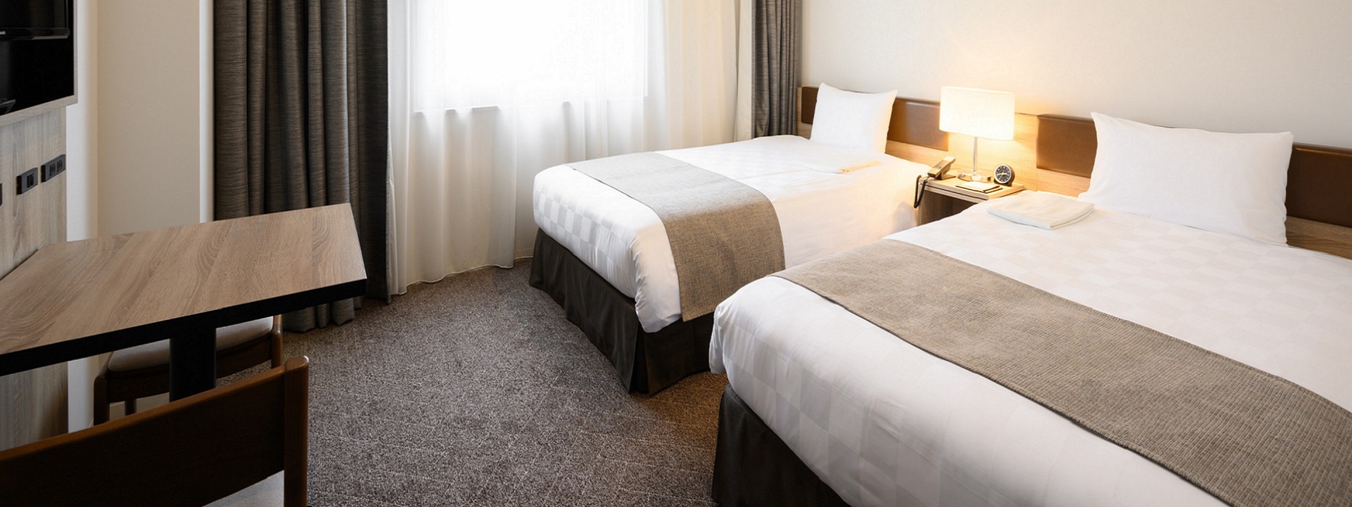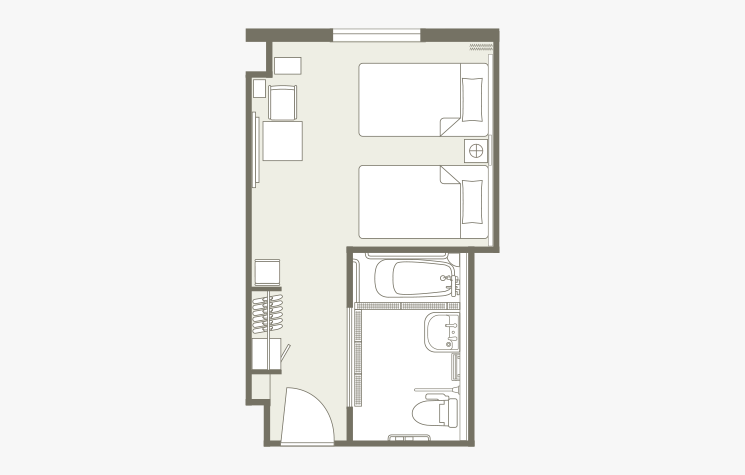 お部屋の間取りはあくまで一例です。面積や家具の配置、備品などはお部屋により異なりますので、あらかじめご了承ください。