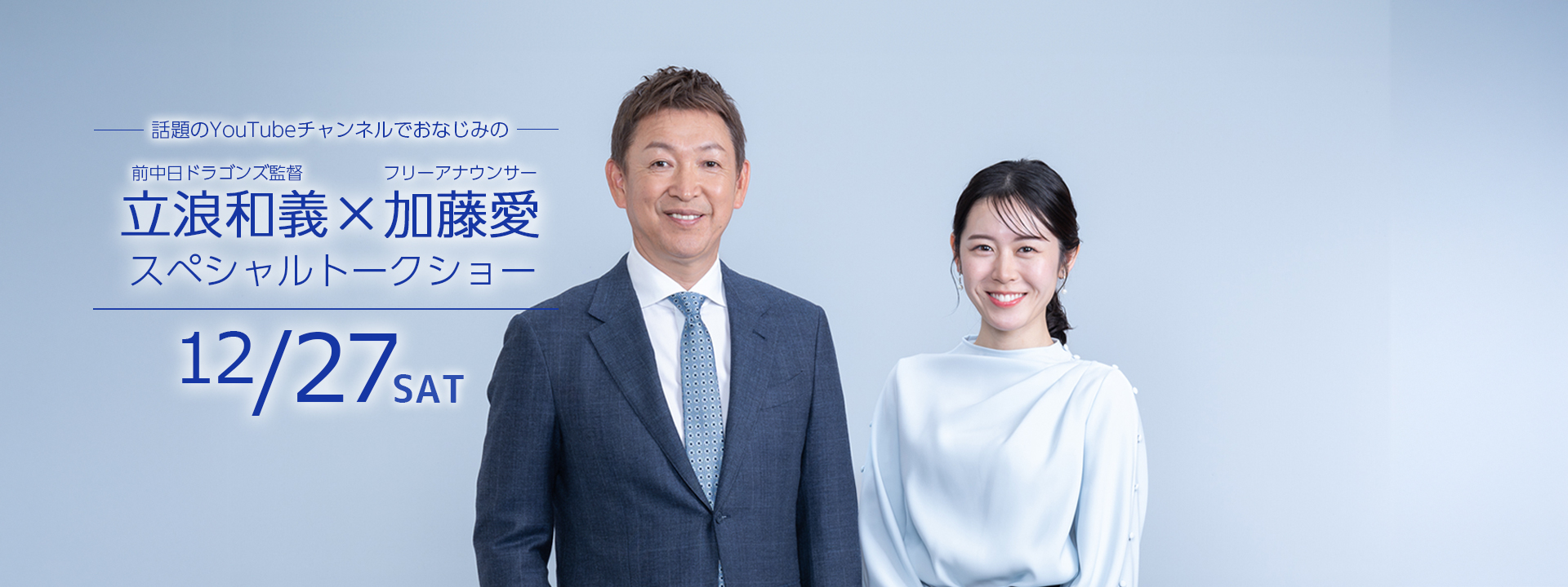 フリーアナウンサーの加藤愛さんと共にお届けするスペシャルトークショーでは、立浪和義さんの知られざるエピソードや裏話が満載。野球ファン必見の内容で、ここでしか聞けない貴重な話をお楽しみいただけます。