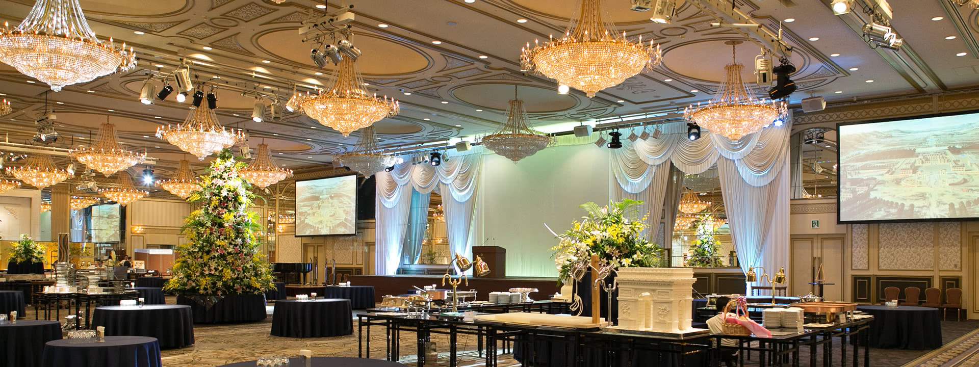 2,000名様を収容できます大宴会場「ヴェルサイユの間」をはじめ、全部で14ヶ所の会場をご用意いたしております。