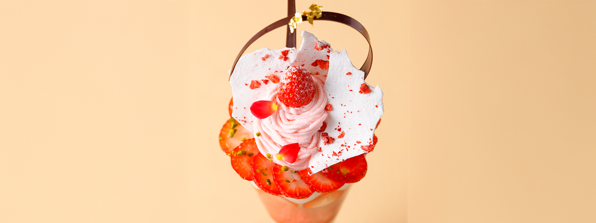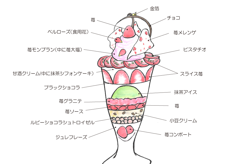 食べ進めるごとに和の素材に出会う、和洋折衷の苺パフェ