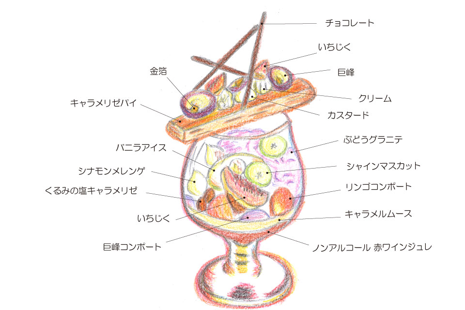 秋を代表する果実を贅沢に使用し、味わいと彩りのハーモニーをお楽しみいただけます。