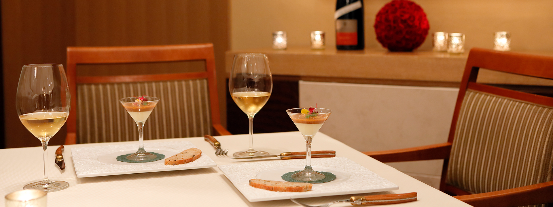 旬の食材を繊細に仕立てたフレンチフルコースと、選べるワンドリンクを添えて。