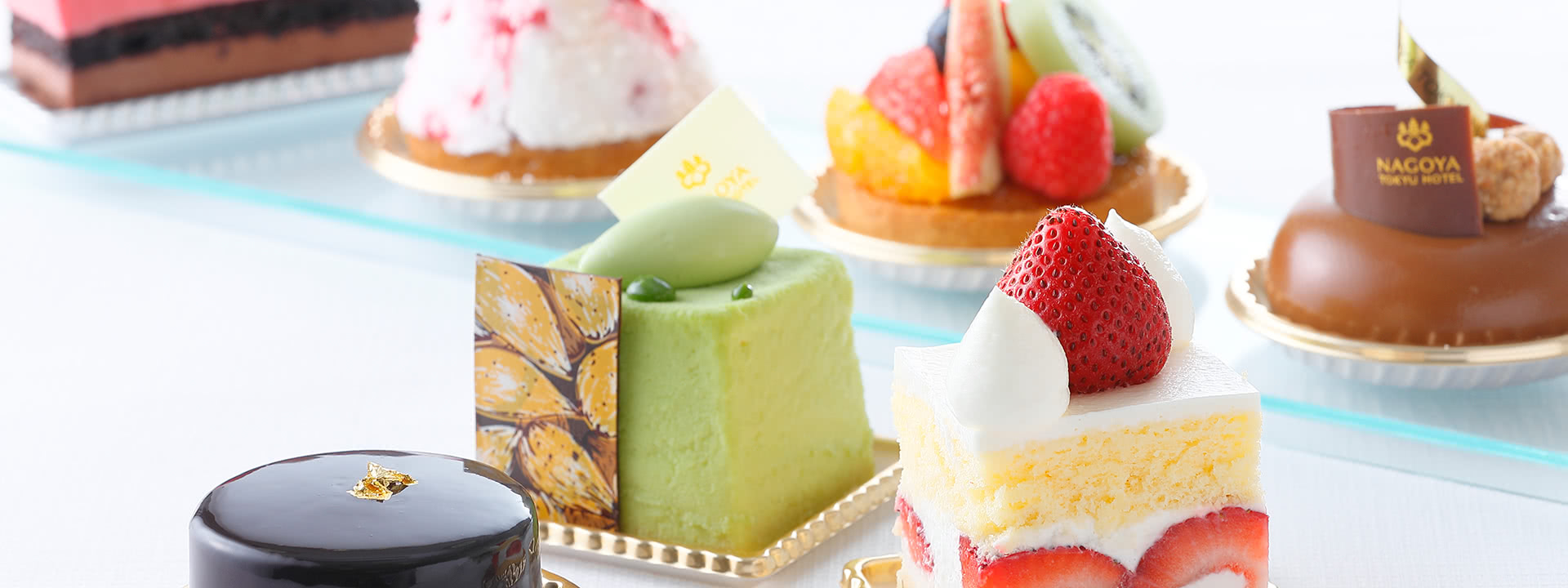 ショーケースにはパティシエ自慢のホテルケーキが並びます。