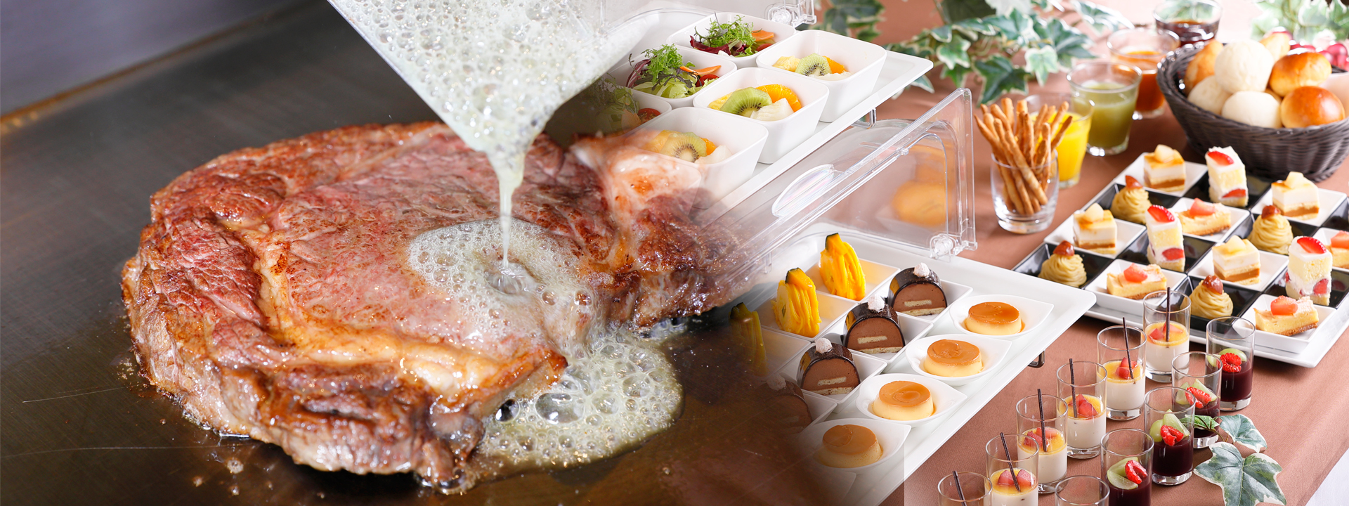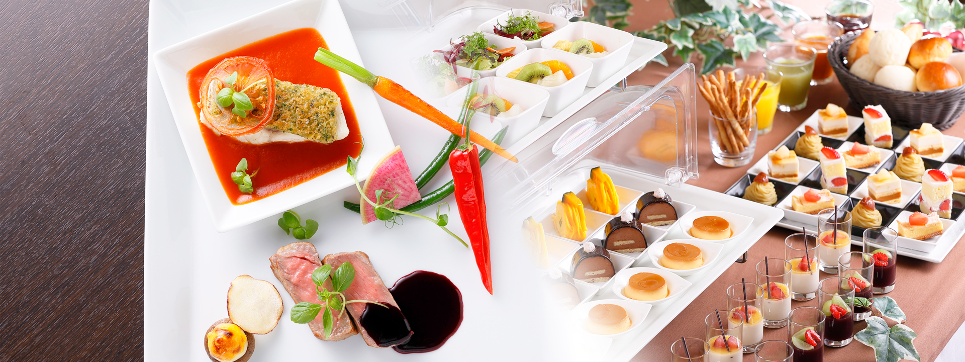 選べるメインディッシュと「スイーツ&デリカアイランド」をお楽しみください。