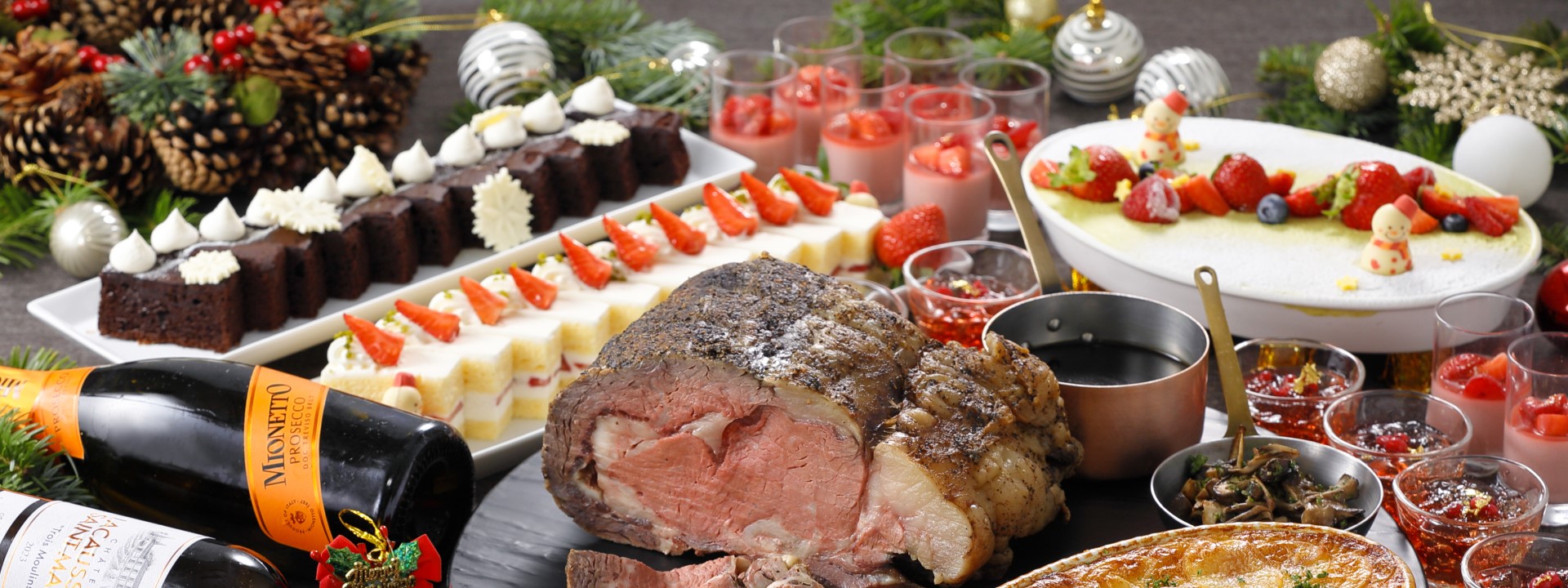ローストビーフやチキン、華やかなスイーツに心躍る
