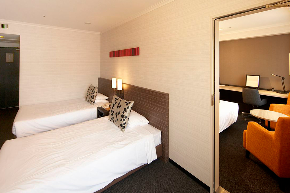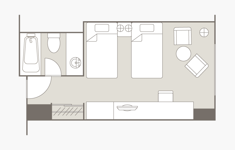 お部屋の間取りはあくまで一例です。面積や家具の配置、備品などはお部屋により異なりますので、あらかじめご了承ください。