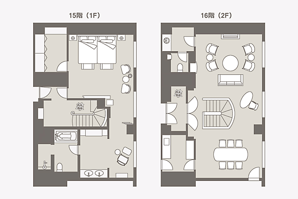 お部屋の間取りはあくまで一例です。面積や家具の配置、備品などはお部屋により異なりますので、あらかじめご了承ください。